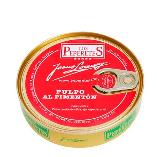 Après cuisson avec sel et oignon, le poulpe est soigneusement coupé en morceaux et mis en boîte avec l'huile d'olive et du paprika, comme le veut la tradition galicienne.