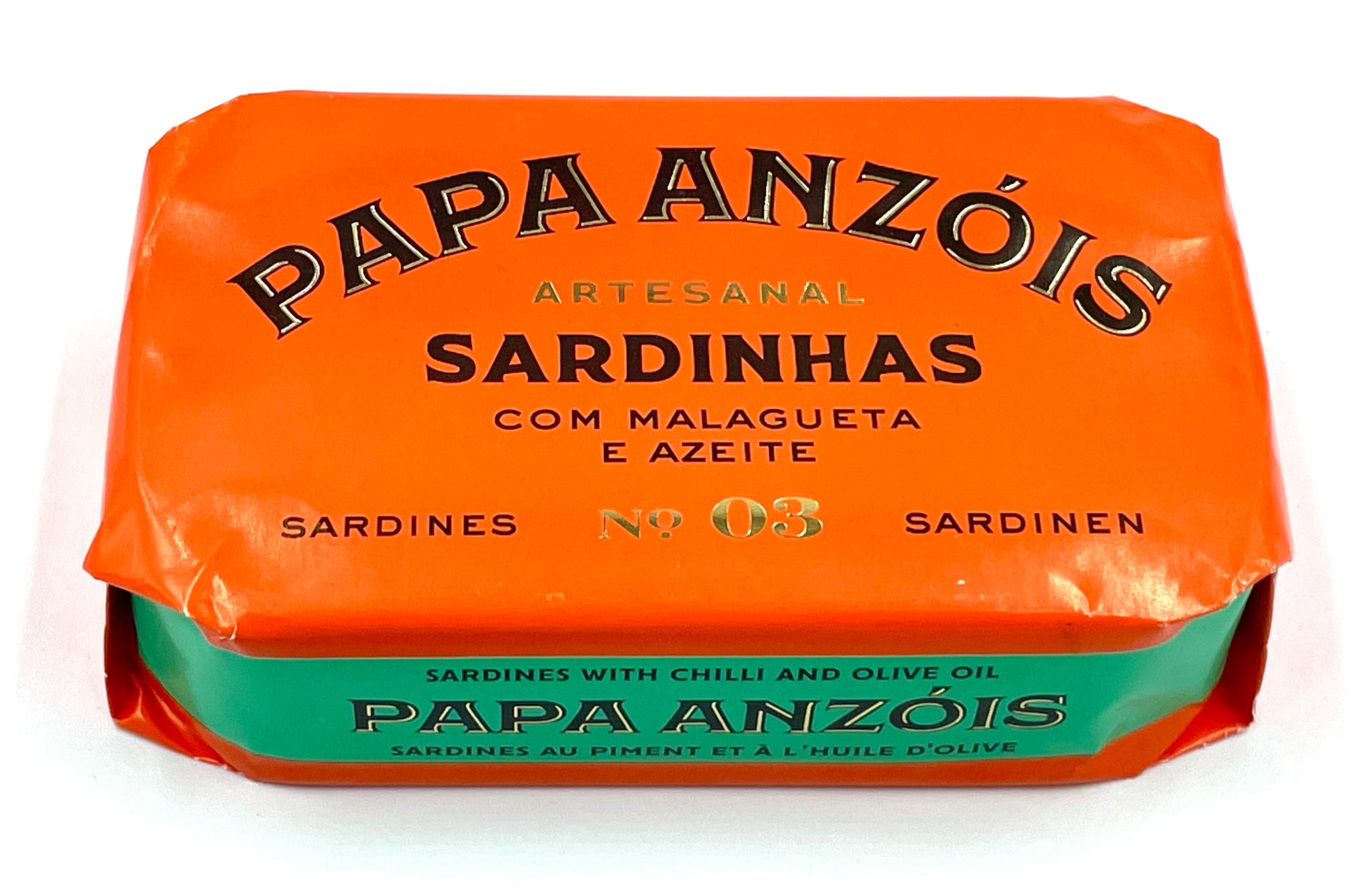 Les sardines "Papa Anzóis" sont produites artisanalement en petites quantités en Algarve avec des sardines pêchées localement.