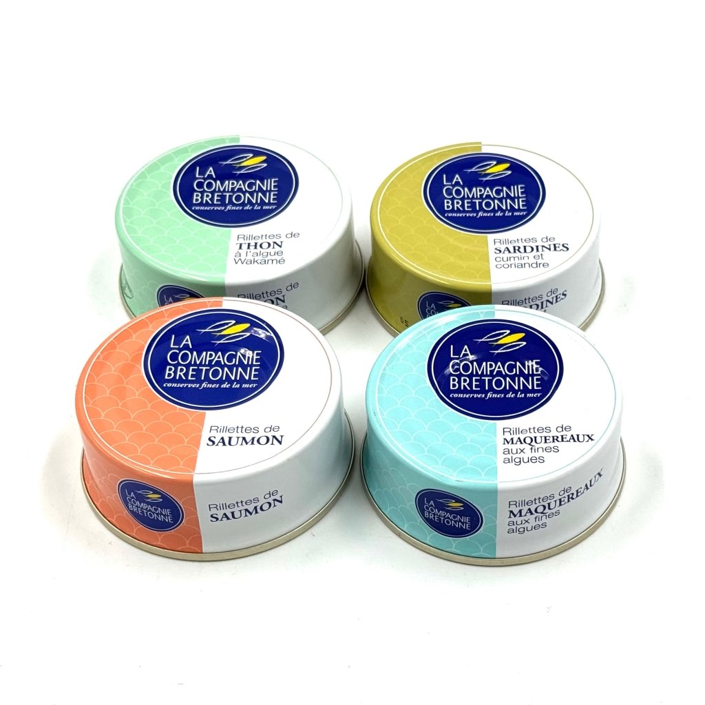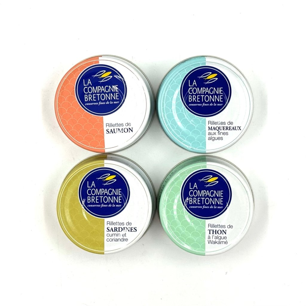 Assortiment des quatre rilettes de La Compagnie Bretonne :