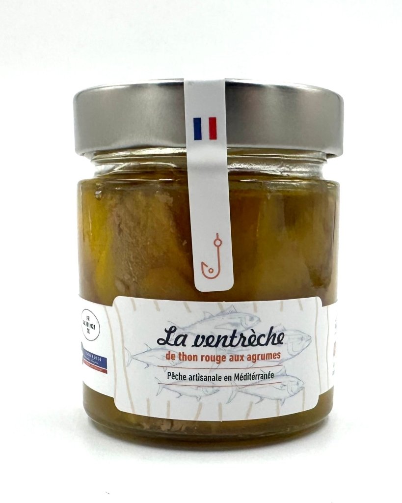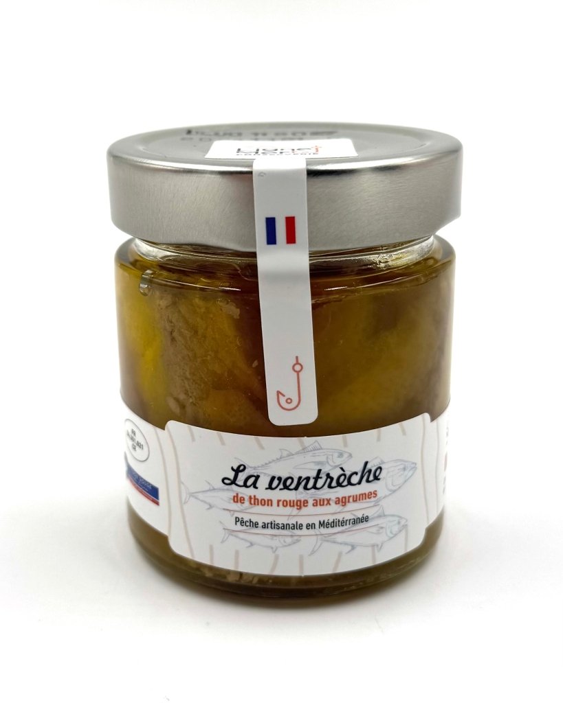 Ingrédients : ventrèche de thon rouge (thunnus thynnus), agrumes, huile d'olive, sel, poivre